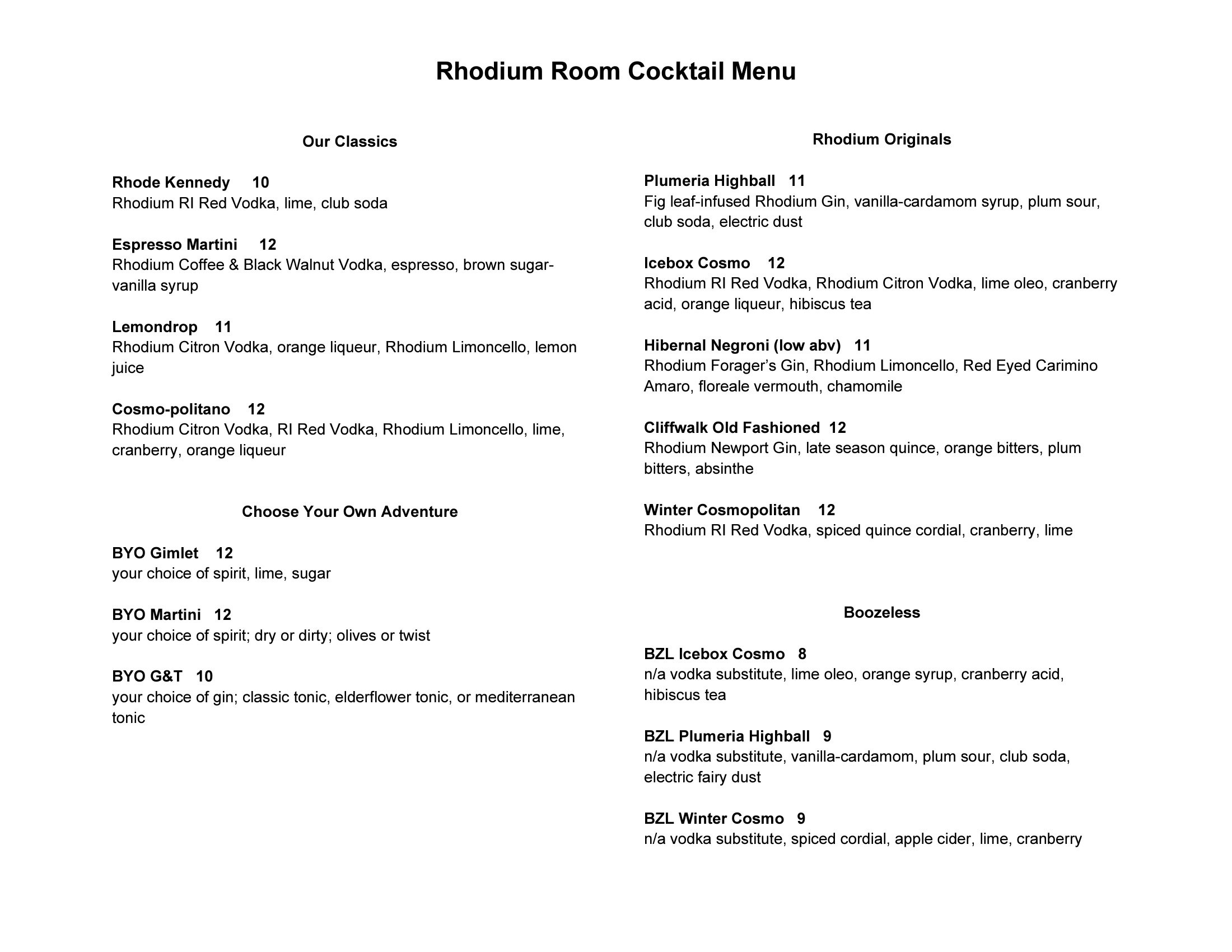 Rhodium Room Menu